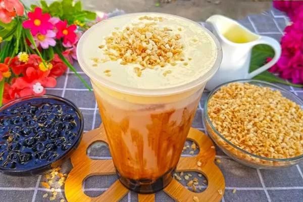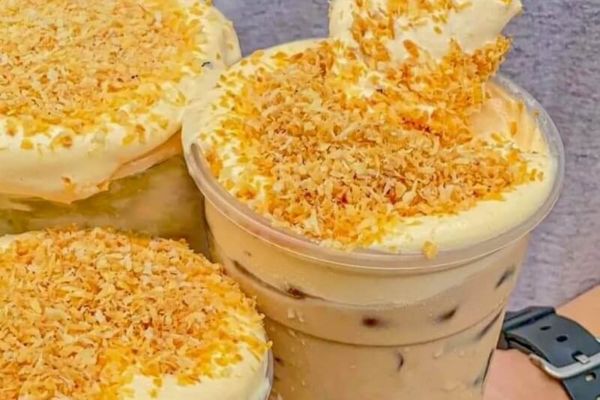 Nếu bạn là fan của các loại kem cheese mặn nhẹ, hãy thử topping này trên nền trà sữa dừa nướng. Sự kết hợp giữa béo – mặn – ngọt – giòn sẽ khiến bạn phải “wow” ngay từ ngụm đầu tiên.