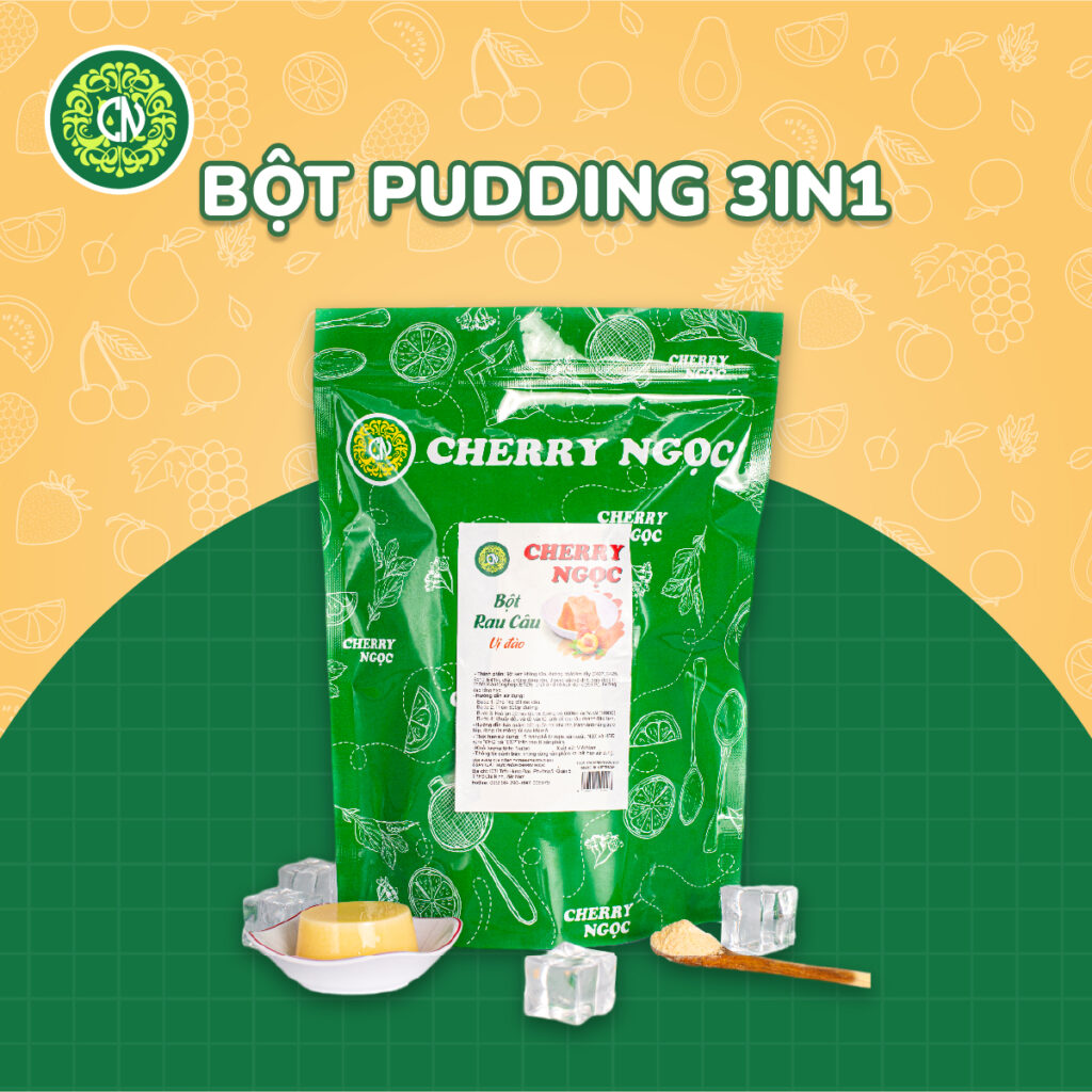 Pudding là món topping cực kì dễ ăn, lại đa dạng hương vị, có thể kết hợp với nhiều dòng trà sữa khác nhau. Bột pudding Cherry Ngọc được nghiên cứu sản xuất với công thức mới giúp khách hàng tiết kiệm thời gian pha chế, chỉ mất 20 phút để cho ra thành phẩm pudding mềm mịn