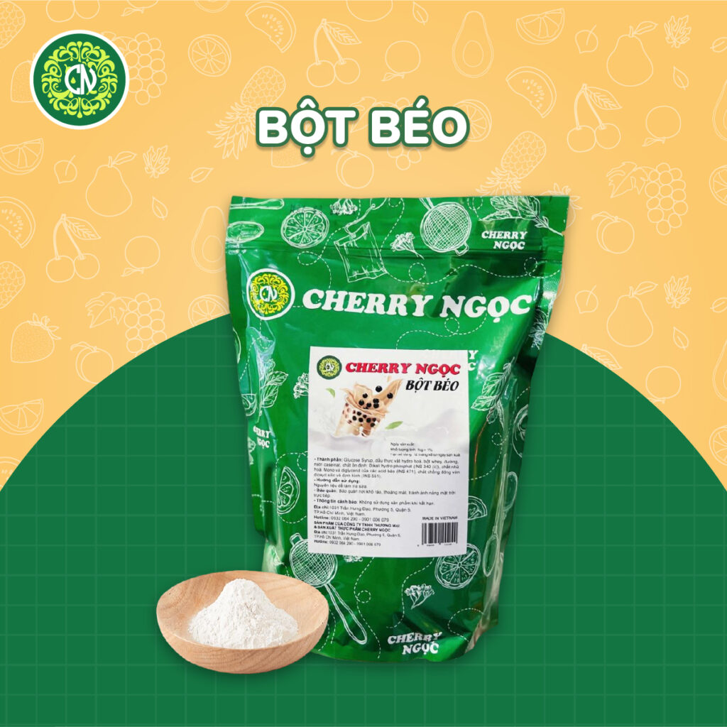 Cherry Ngọc là địa chỉ phân phối và gia công nguyên liệu trà sữa với công nghệ sản xuất hiện đại. Cung cấp đầy đủ sản phẩm nguyên liệu trà sữa: bột trà sữa, bột puding, bột béo, bột kem, …