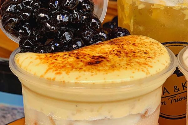 Trà sữa trứng được phục vụ trong một quán trà sữa.